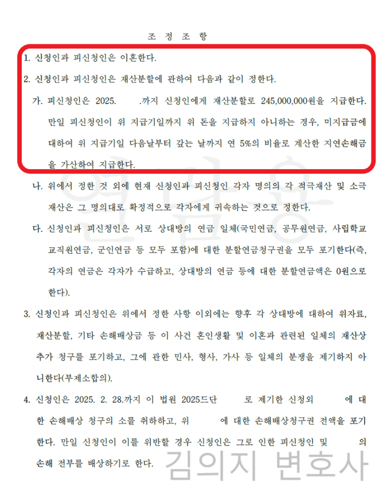 - 상호 간 위자료, 재산분할 등 추가 청구 금지