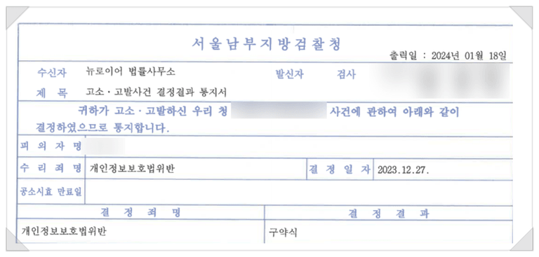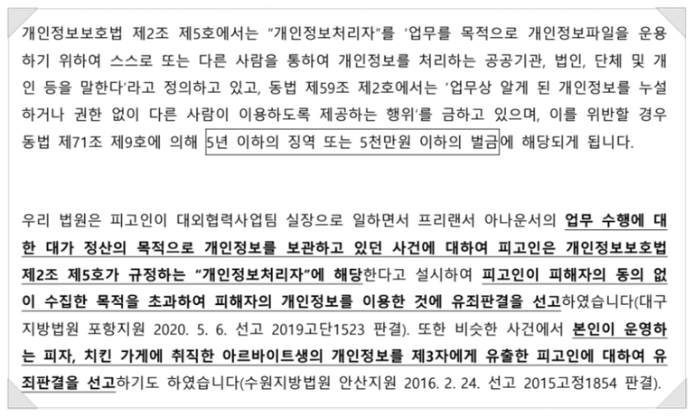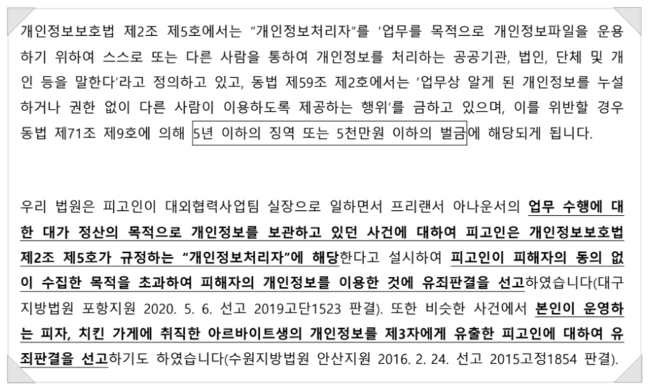이처럼 개인정보보호법위반 문제는 '어떻게 법리적으로 입증하는지'에 따라 결과 차이가 발생합니다.