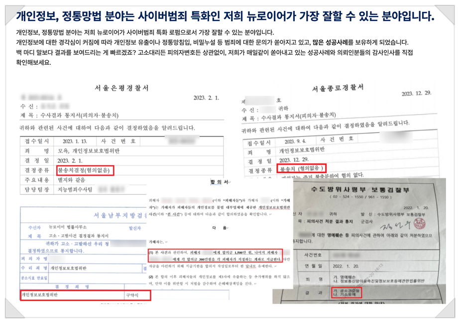 실제로 저희가 개인정보보호법위반 신고 사건 대리를 도맡아오며,
