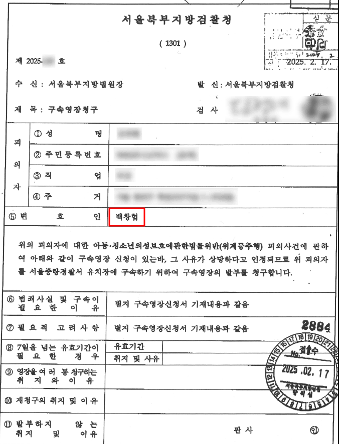 경찰 조사 이후 얼마간의 시간이 지나고 수사기관은 구속영장을 청구하였습니다.