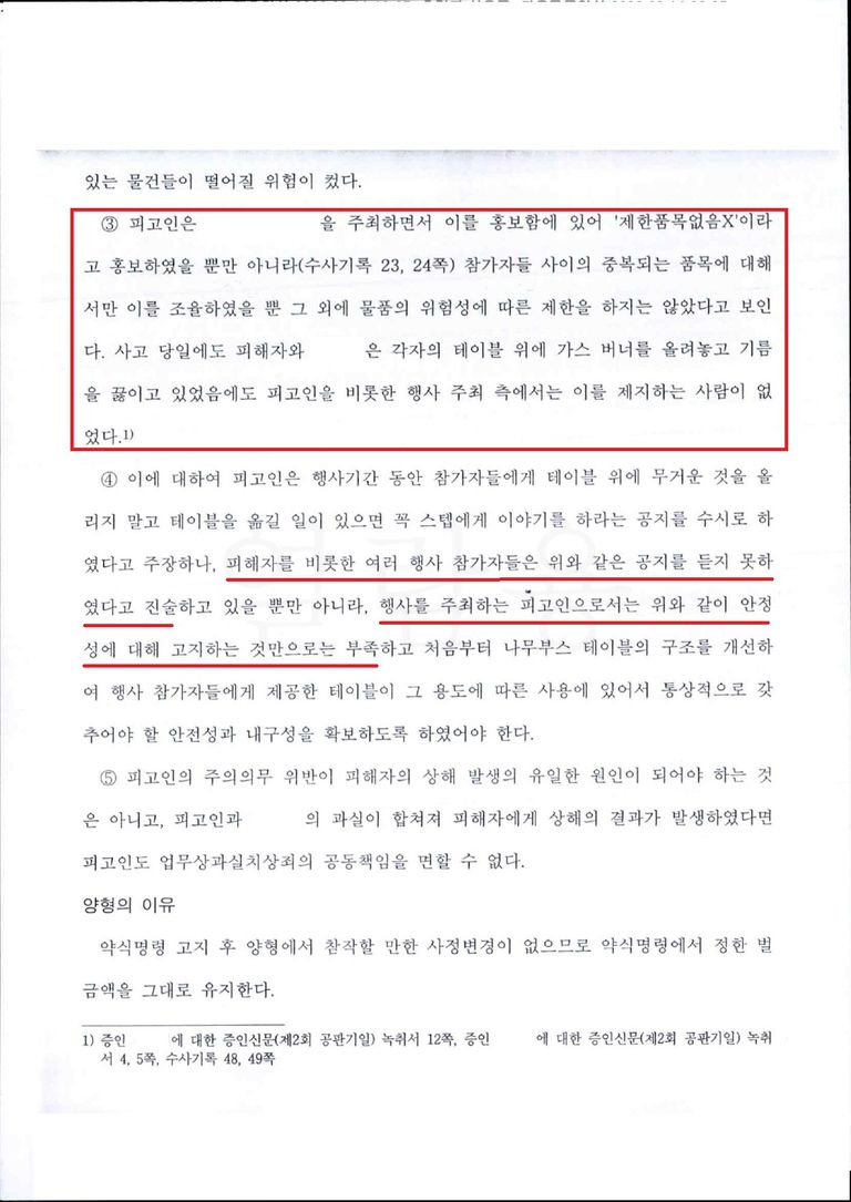 일반적으로 상해 사고가 발생하면 보통 직접적인 가해자만을 상대로 고소 혹은 손해배상을 진행하기 마련입니다. 또한, 이번 사건에서는 얼핏 보면 끓는 기름이 든 냄비를 부실한 나무 부스 테이블 위에 올려놓은 의뢰인의 과실이 더 커보일 수 있다는 점을 상대측이 주장하였습니다.