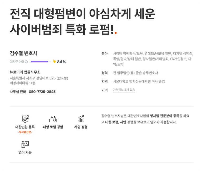 안녕하십니까? 사이버 범죄 로펌 뉴로이어의 김수열 대표 변호사입니다.