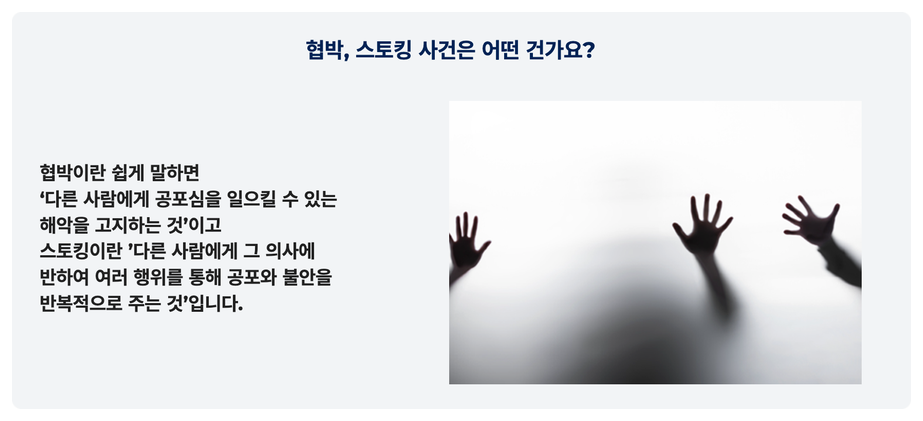 ![[협박/스토킹] 집단스토킹? 전담 로펌 처벌 노하우 #스토킹](/_next/image?url=https%3A%2F%2Fd2ai3ajp99ywjy.cloudfront.net%2Fuploads%2Ftitleimage%2Foriginal%2F5b164d432320ecd6d30502d0-original.jpg&w=3840&q=75)