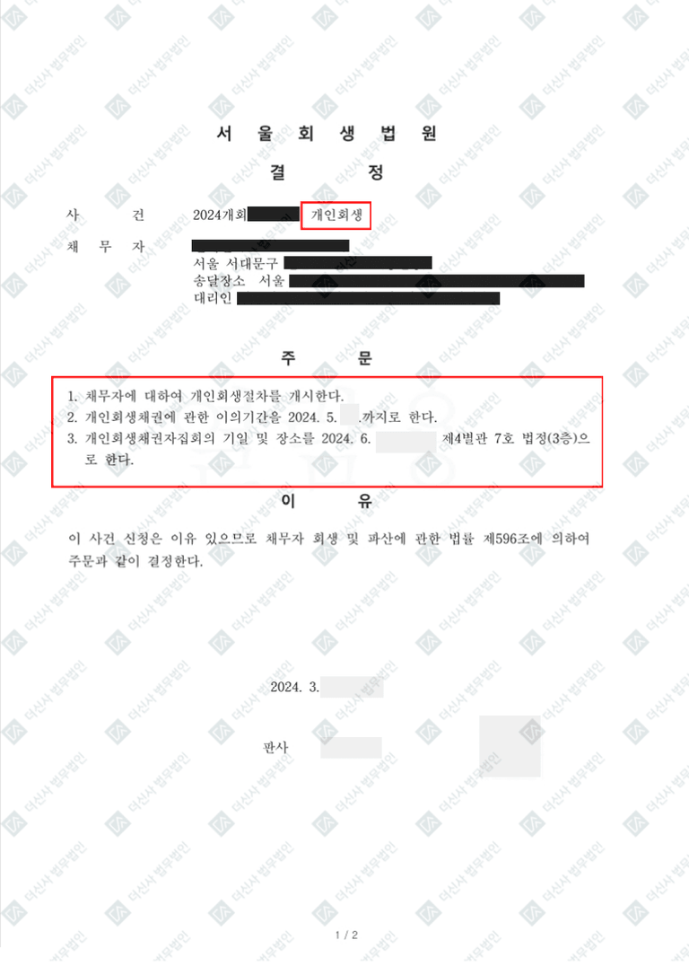 A씨는 안정적인 직장을 다니며 대출을 받아 생활했지만, 결혼 비용과 생활비 부족으로 신용카드 대출까지 이용하게 되었습니다. 결국 원금과 이자를 감당할 수 없게 되었고, 연체가 시작되었습니다. 채무가 7천만 원까지 늘어나면서 압박을 느낀 A씨는 개인회생을 신청했습니다. 법원은 A씨의 월 소득과 생활비를 고려해 3년 동안 월 80만 원씩 변제하도록 결정했고, 남은 채무는 면책되었습니다. 이후 A씨는 경제적으로 회복하여 정상적인 생활을 되찾을 수 있었습니다.