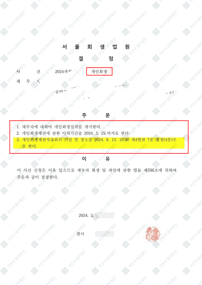 [🎖️개인회생 개시결정 사례]