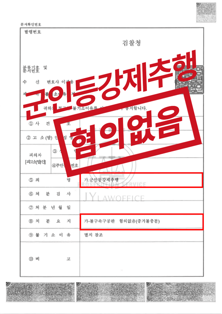 [성공사례] 군인등강제추행 - 혐의없음