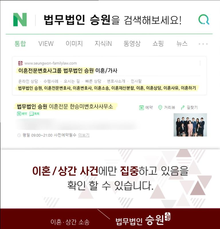 지금까지 15년째 이혼 및 가사 사건에 집중해오고 있는 법무법인 승원의 한승미 법률가입니다.
