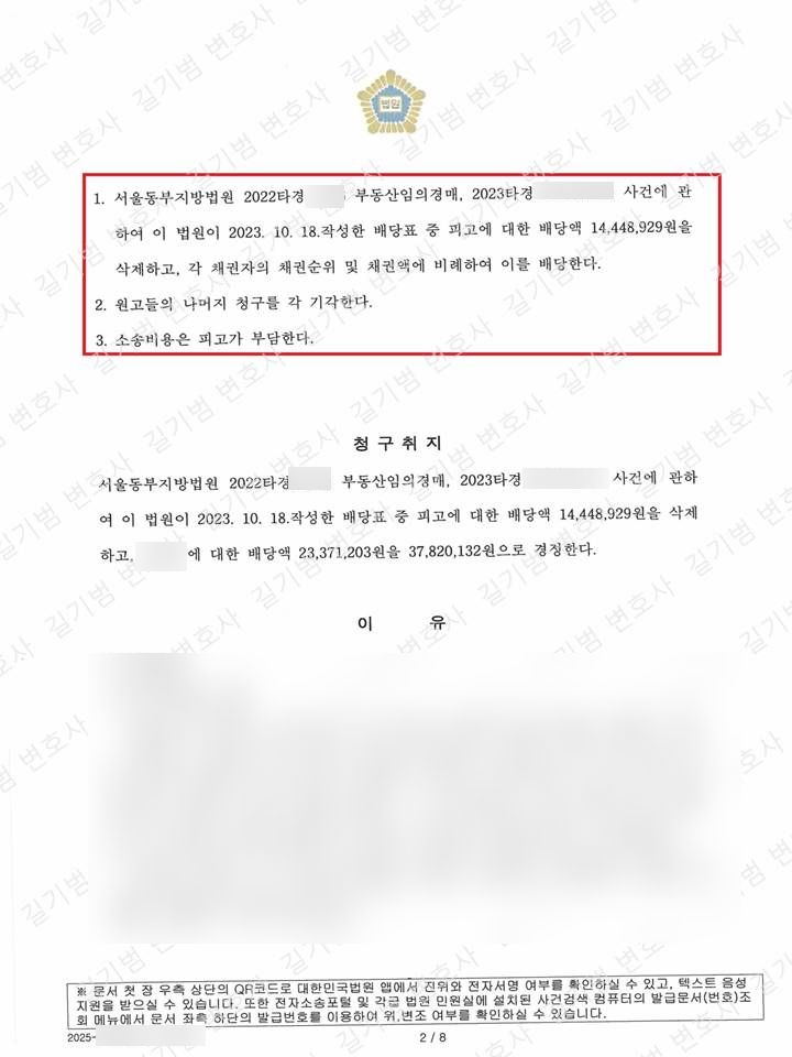저는 배당이의 사건에서 원고나 피고를 대리하여 전부승소한 다수의 성공사례를 보유하고 있습니다.