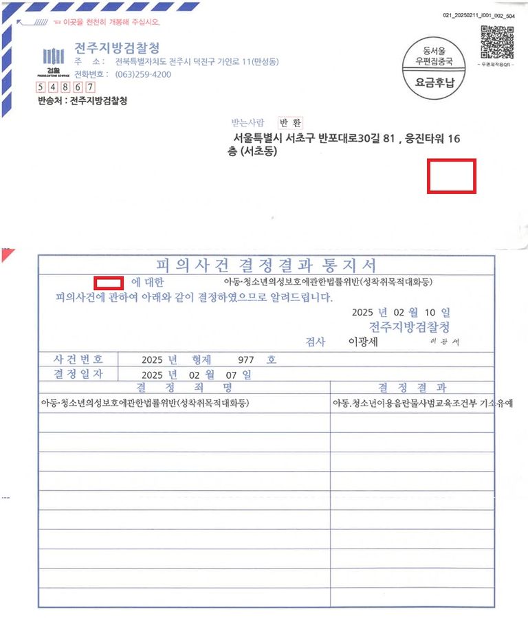 ![[기소유예] 초6 여학생과 성착취목적대화, 기소유예 종결](/_next/image?url=https%3A%2F%2Fd2ai3ajp99ywjy.cloudfront.net%2Fuploads%2Ftitleimage%2Foriginal%2F5c480901b834cb67981158b4-original.jpg&w=3840&q=75)