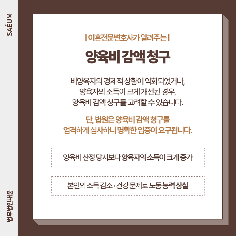 양육비 감액 청구, 쉽지 않습니다