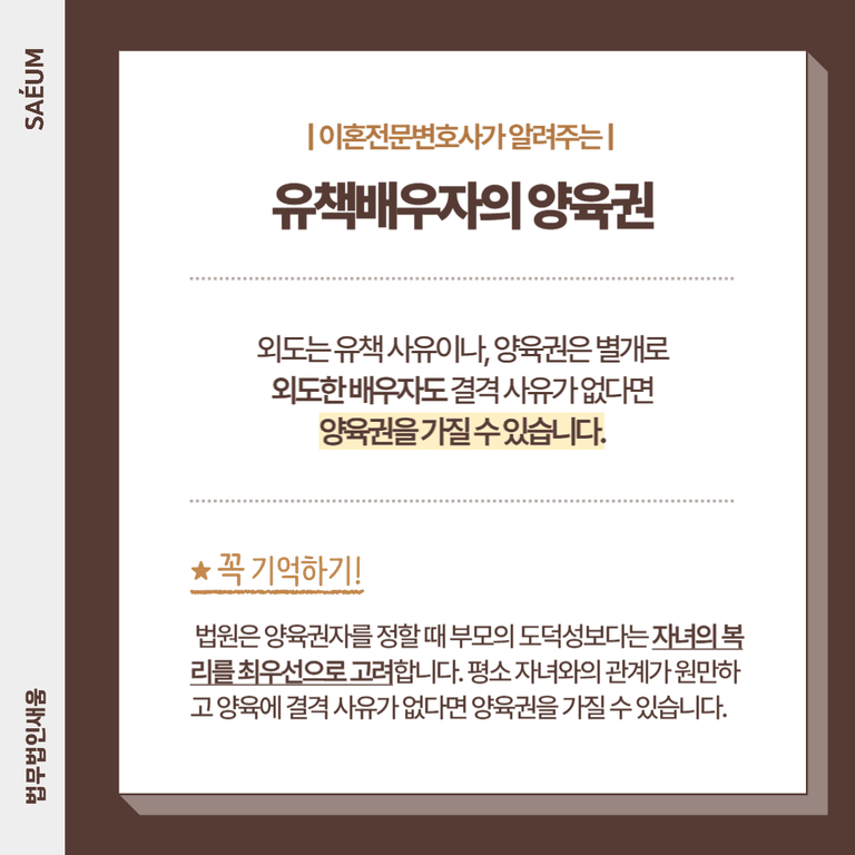 외도한 배우자도 양육권을 가질 수 있습니다