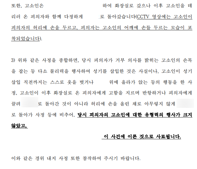 의뢰인의 행위를 강간으로 평가할 수 없었습니다.