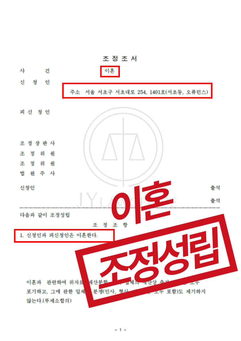 이와 같은 변호사의 노력에 따라, 의뢰인의 이혼조정은 성립되었으며, 의뢰인과 상대방은 재판 없이 빠르게 이혼할 수 있었습니다.