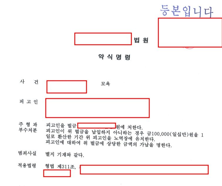 가해자의 악플 작성 행위에 형법 제311조 묘욕죄가 인정되어 벌금형 선고를 받았습니다.