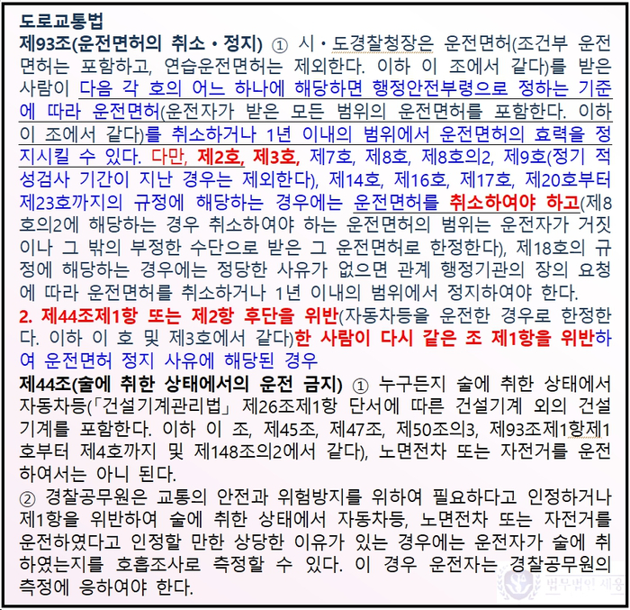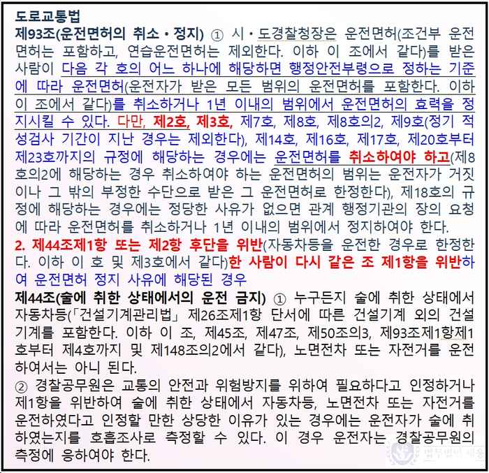 *참고로, 음주측정거부의 경우에는 적발 횟수와 무관하게 반드시 면허를 취소하여야 하는 기속행위입니다.