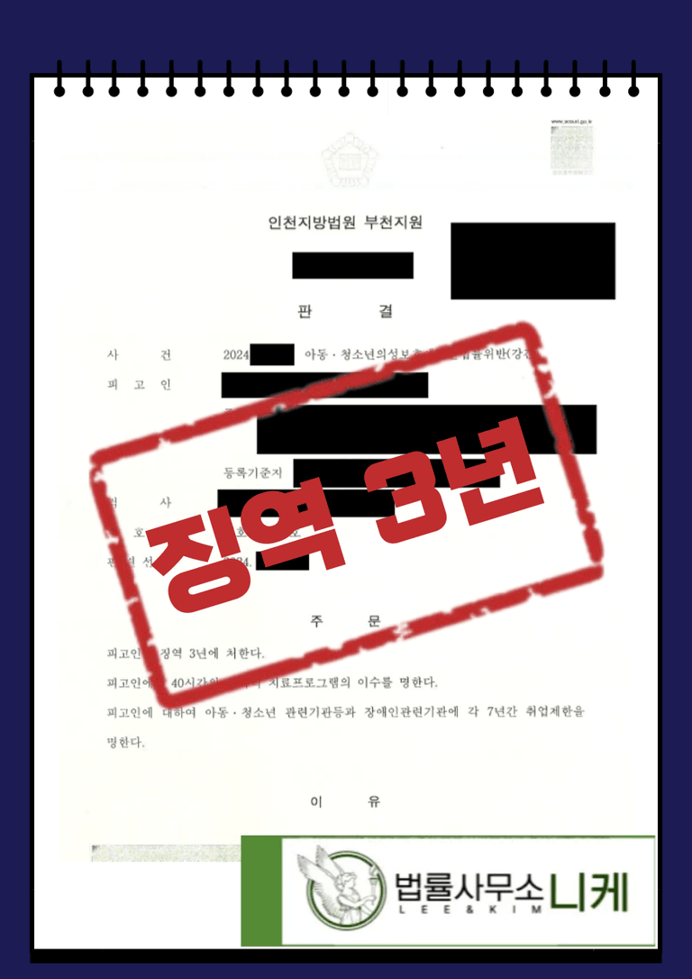 ![[집행유예] 미성년자 대상 강간 혐의로 입건 (아청강간)](/_next/image?url=https%3A%2F%2Fd2ai3ajp99ywjy.cloudfront.net%2Fuploads%2Ftitleimage%2Foriginal%2F5c29e1f3050f96c793a298a7-original.jpg&w=3840&q=75)