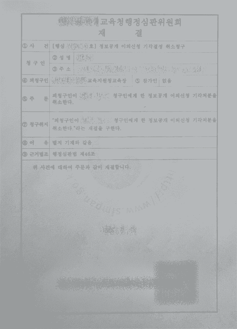따라서 저희는 교육지원청을 상대로 정보공개 청구를 위한 행정심판을 진행하기로 결정하였습니다.