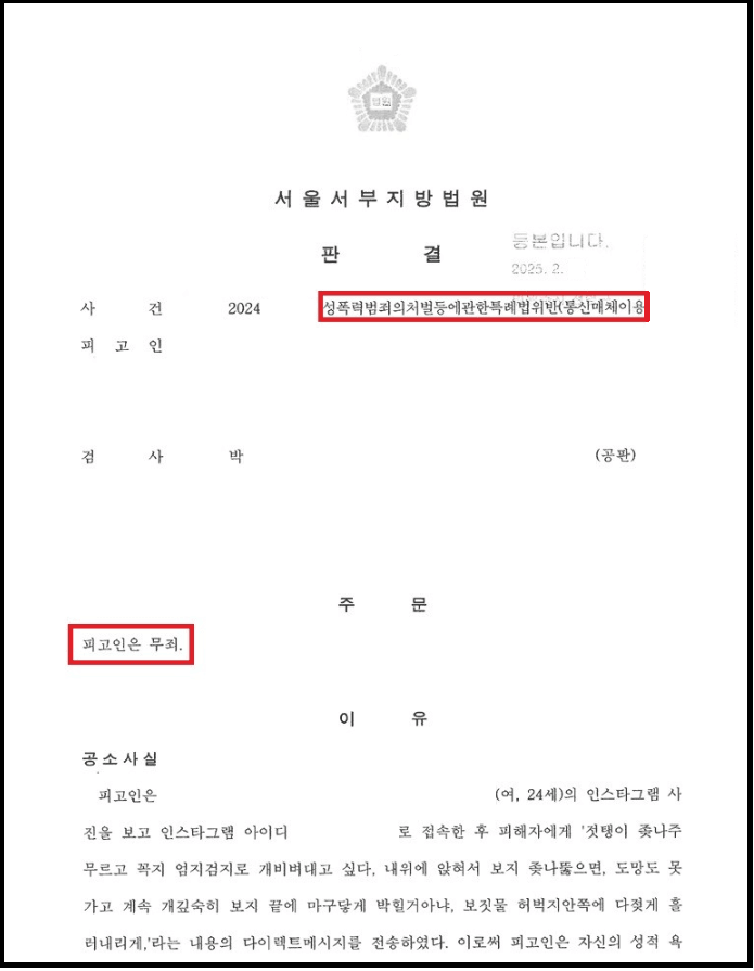의뢰인은 여성 피해자에게 인스타그램 으로 "젓탱이 좆나주므르고 꼬지 엄지검지로 개비벼대고 싶다.