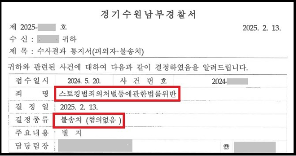 【혐의없음】 스토킹처벌법위반 불송치 성공사례