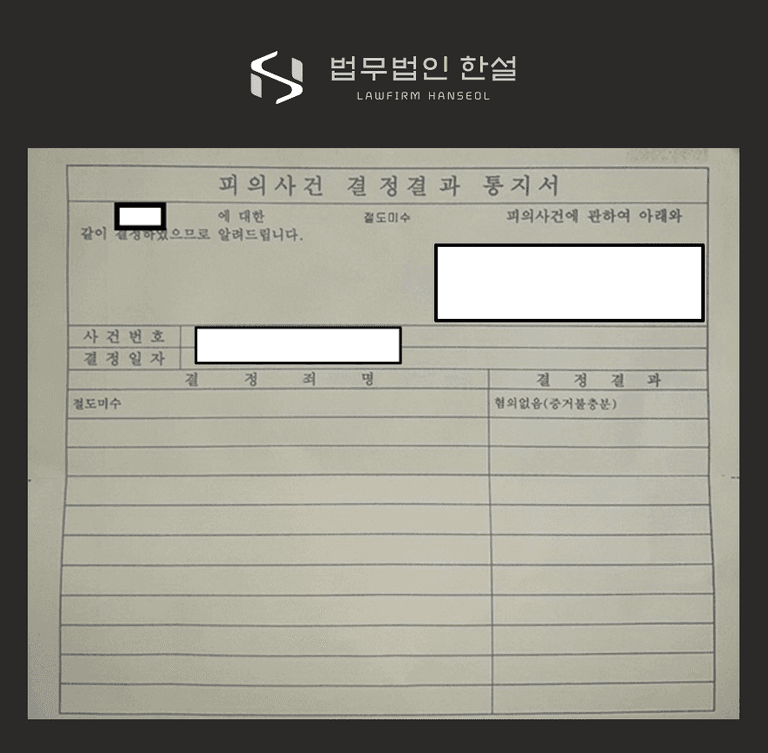경찰은 A의 혐의를 검찰에 송치했지만, 검찰은 법무법인 한설의 의견을 검토한 끝에 ‘혐의 없음’ 불기소 의견으로 사건을 종결 했습니다.
