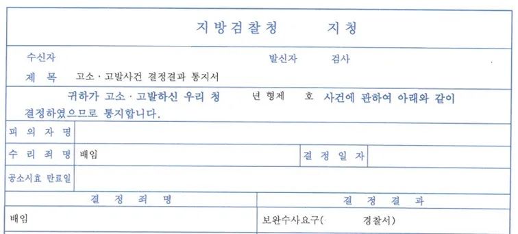 그 결과 담당 검사는 본 변호사의 법리적인 주장을 받아들여 해당 사건에 대하여 다시 관할 경찰서로 "보완수사요구"결정을 하였습니다. 덕분에 매도인(피의자)의 배임혐의에 대한 본격적인 수사가 다시 진행되게 되었습니다.