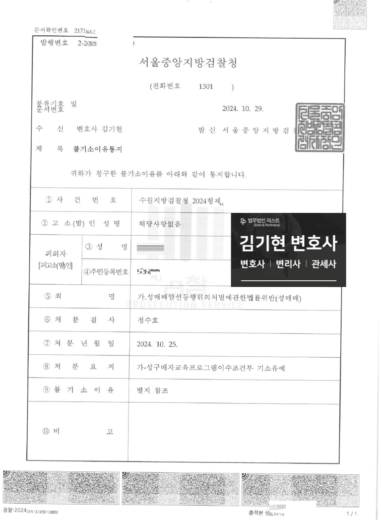 성매매 사건 기소유예 성공 사례입니다.