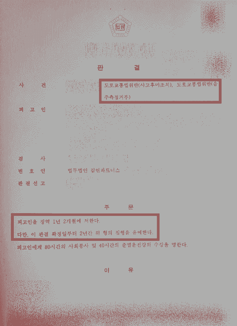 👇이 글에서는 주취운전 전력이 있던 상태에서 사고 후 미조치와 음주측정거부 혐의로 강력한 처벌을 피할 길이 없었지만, 저희 법무법인의 조력으로 집행유예 판결을 받아낸 사례를 다루고 있습니다.