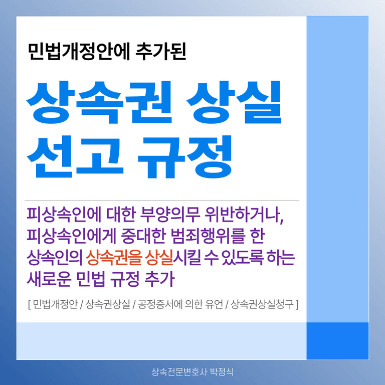 ![[상속전문변호사] 민법개정안에 새로 추가되는 상속권상실 규정과 관련하여](/_next/image?url=https%3A%2F%2Fd2ai3ajp99ywjy.cloudfront.net%2Fuploads%2Ftitleimage%2Foriginal%2F5b19e65d670e780b1799e877-original.jpg&w=3840&q=75)