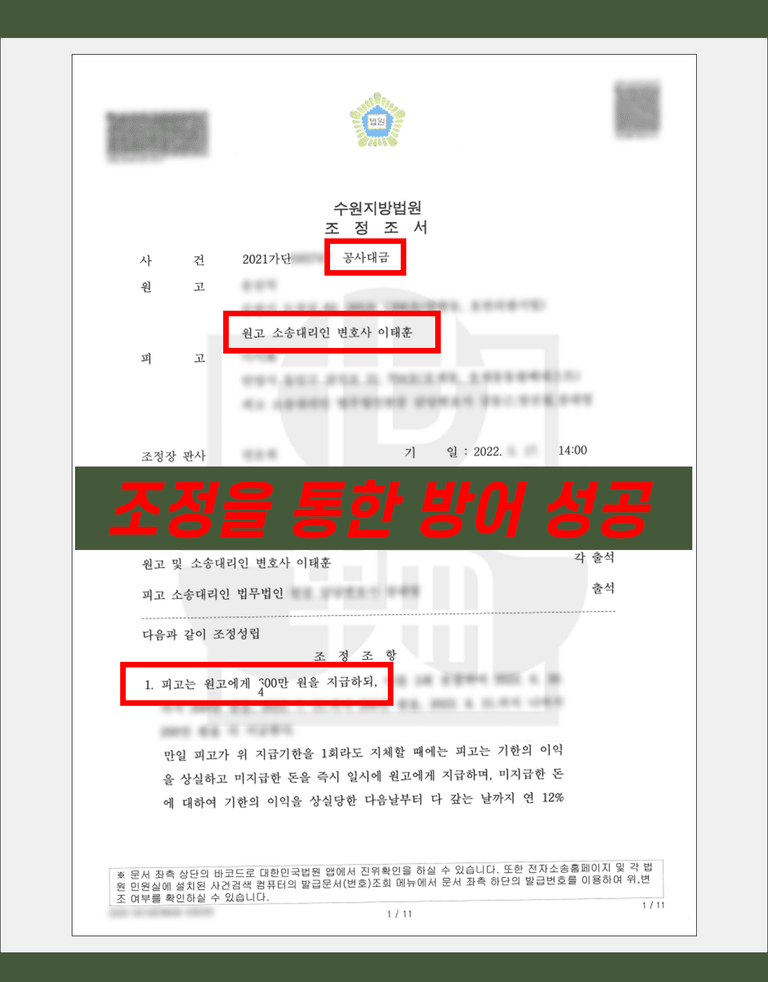 조정을 통해 원고가 제기한 인테리어 리모델링 대금 청구소송을 방어할 수 있었던 과정을 말씀드려보겠습니다.