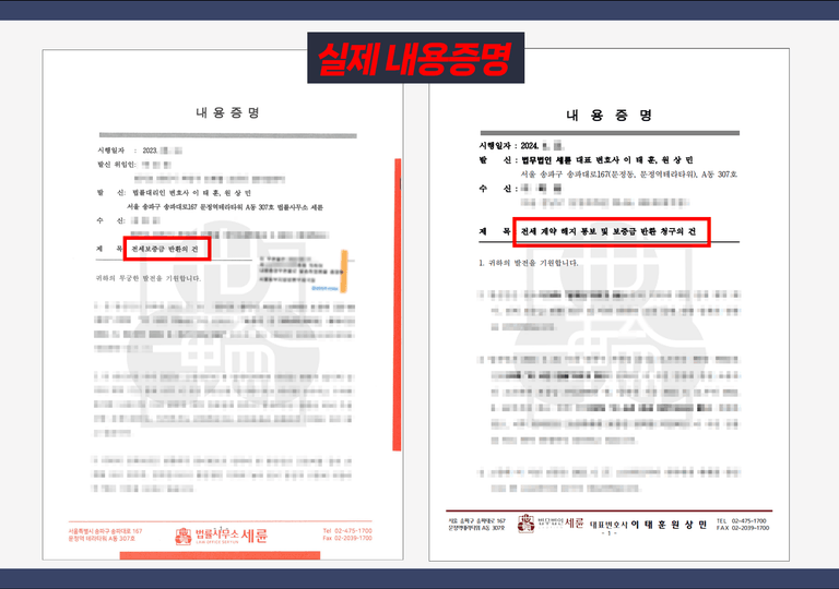 물론 저희 법무법인 세륜을 찾아주시는 분들의 사건도 내용증명으로 먼저 전세금 반환청구를 하는 경우가 많은데요.