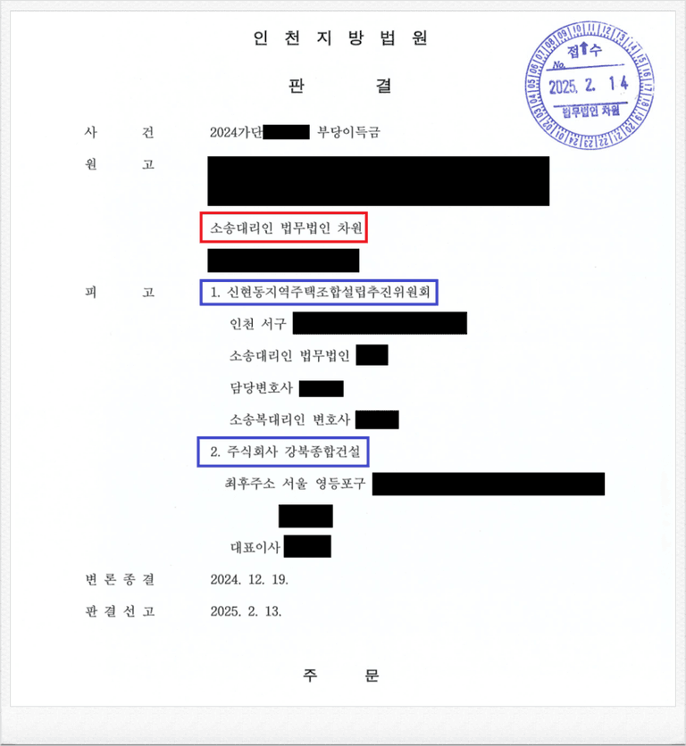 그러나, 가입 후 피고 신현동지역주택조합 추진위원회 측이 진행하는 사업이 계획한 대로 진행되지 않았고, 이에 의뢰인은 정식 민사소송을 통하여 기 납입한 금원의 반환을 원하셨습니다.