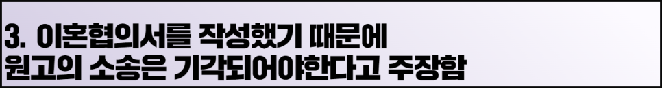 3. 이혼협의서를 작성했기 때문에 원고의 소송은 기각되어야한다고 주장함