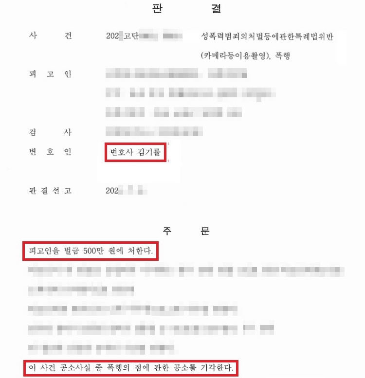 [카메라등이용촬영죄 벌금형 선고 및 폭행죄에 대한 공소기각]