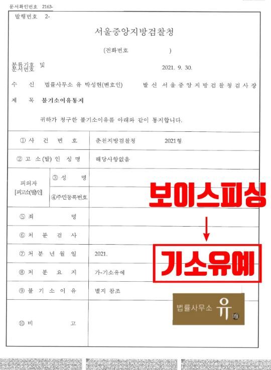 춘천지방검찰청 원주지청은 법률사무소 유(唯) 형사전문변호사가 제출한 변호인의견서와 양형자료를 참작하여 피해자와의 합의가 없었음에도 불구하고 의뢰인의 혐의 모두에 대해 기소유예처분을 하였습니다.
