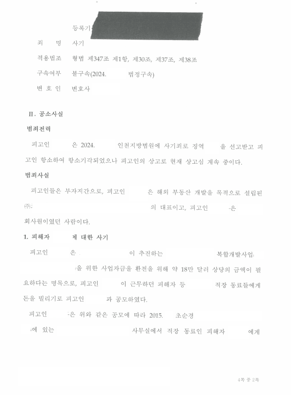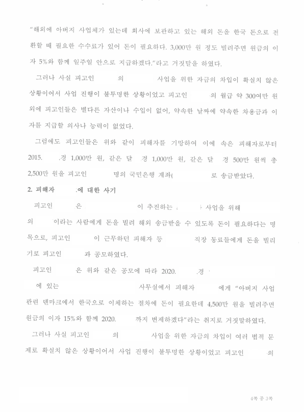 저는 즉각 차용금 사기로 형사고소하였고 검사는 혐의를 인정하여 기소하였으며 이후 가해자와의 합의로 피해액인 대여금을 변제받았습니다.