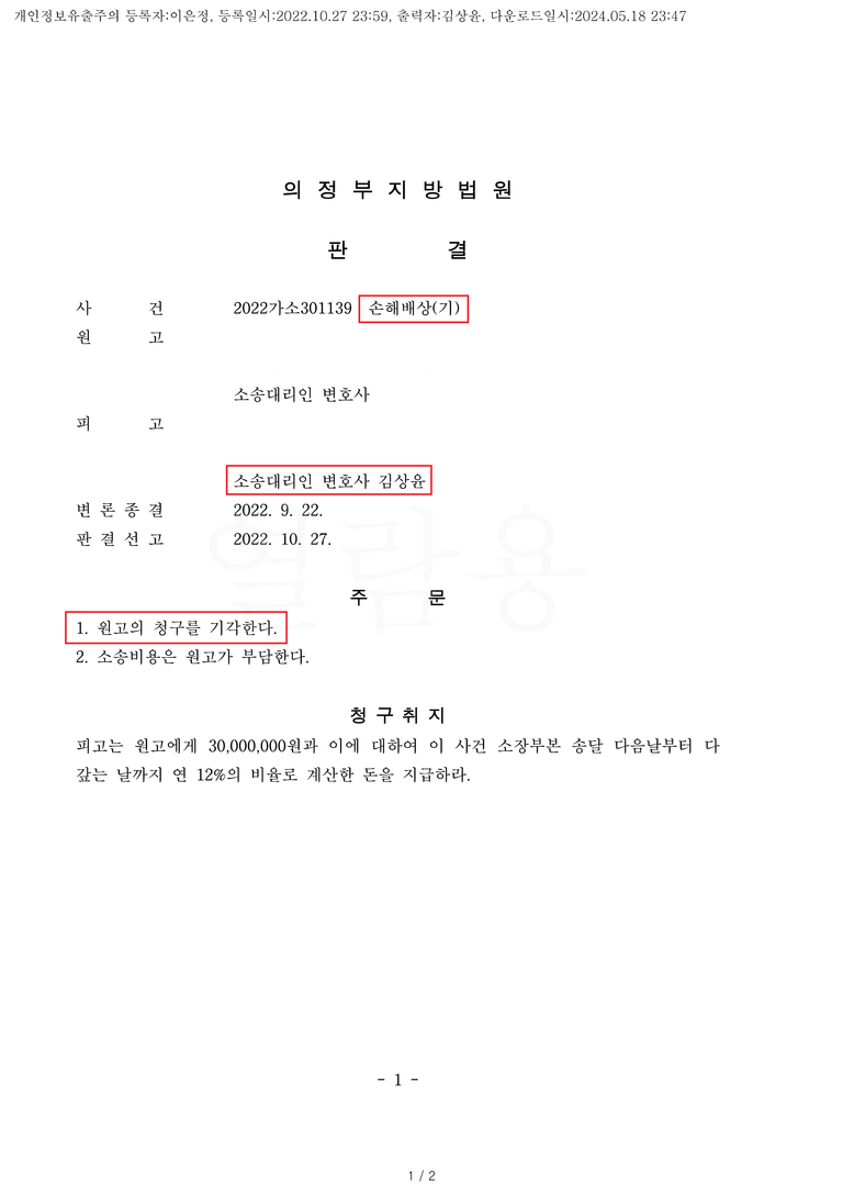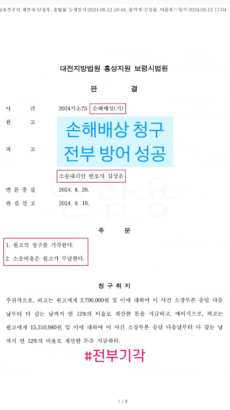 <손해배상 전문 김상윤 변호사, 3천만 원 손해배상 청구 전부 방어 성공>