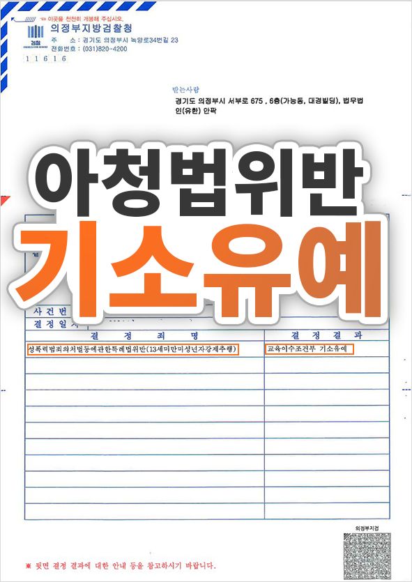 이에 의뢰인은 '교육이수 조건부 기소유예' 처분을 받았습니다.