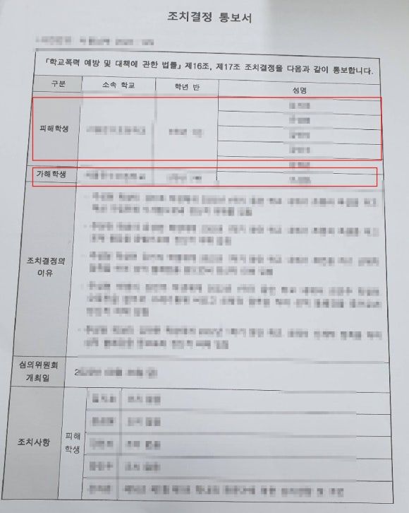 하지만 피해학생의 부모님들은