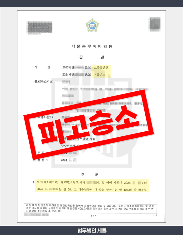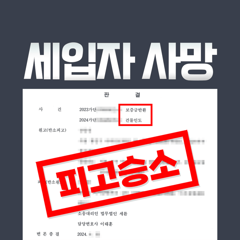 의뢰인은 다행히 법무법인 세륜의 조력을 받아 원고(세입자의 상속인)가 제기한 보증금 반환 청구 소송은 기각되었고, 임대인이 세입자의 상속인을 상대로 제기한 건물인도청구 소송과, 불법점유에 대한 손해배상 청구소송은 법원에서 모두 받아들여져서 의뢰인(피고측)의 완전한 승소로 마무리 지을 수 있었습니다.
