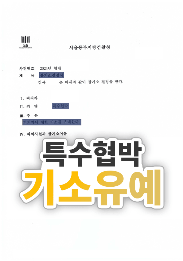 위와 같은 과정을 거쳐 의뢰인은 최종적으로 ‘불기소(기소유예)’ 처분을 받을 수 있었습니다.