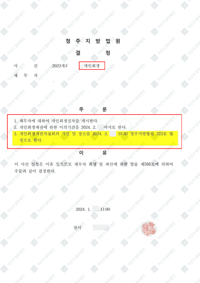 [🎖️개인회생] 회생절차 개시결정