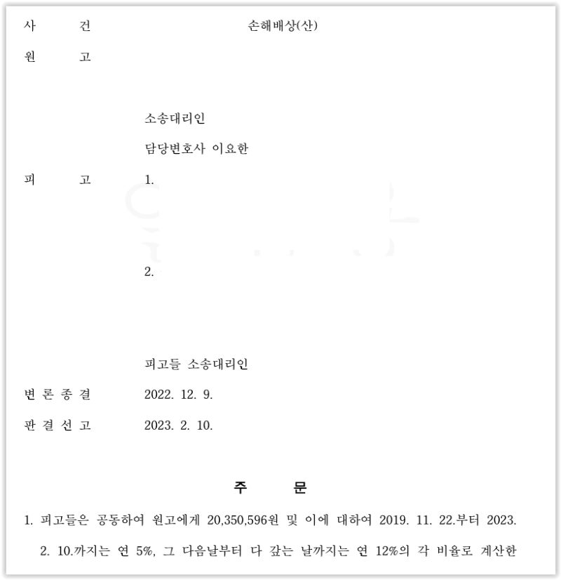 이처럼 증인신문을 진행하면서, 실제 사고 경위에 대한 의뢰인 주장을 뒷받침할 수 있는 다수의 증언을 확보할 수 있었습니다.