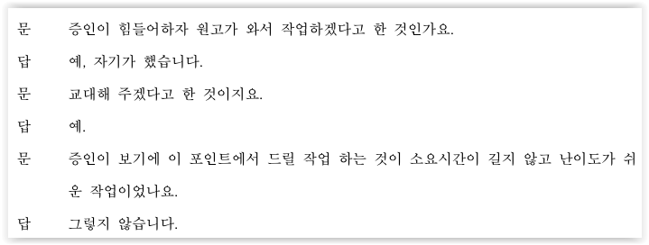 동료작업자에 대한 증인신문 진행
