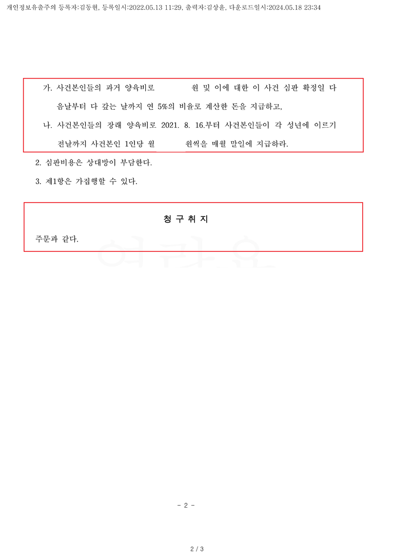 장래 양육비 월 150만 원 전액 인용
