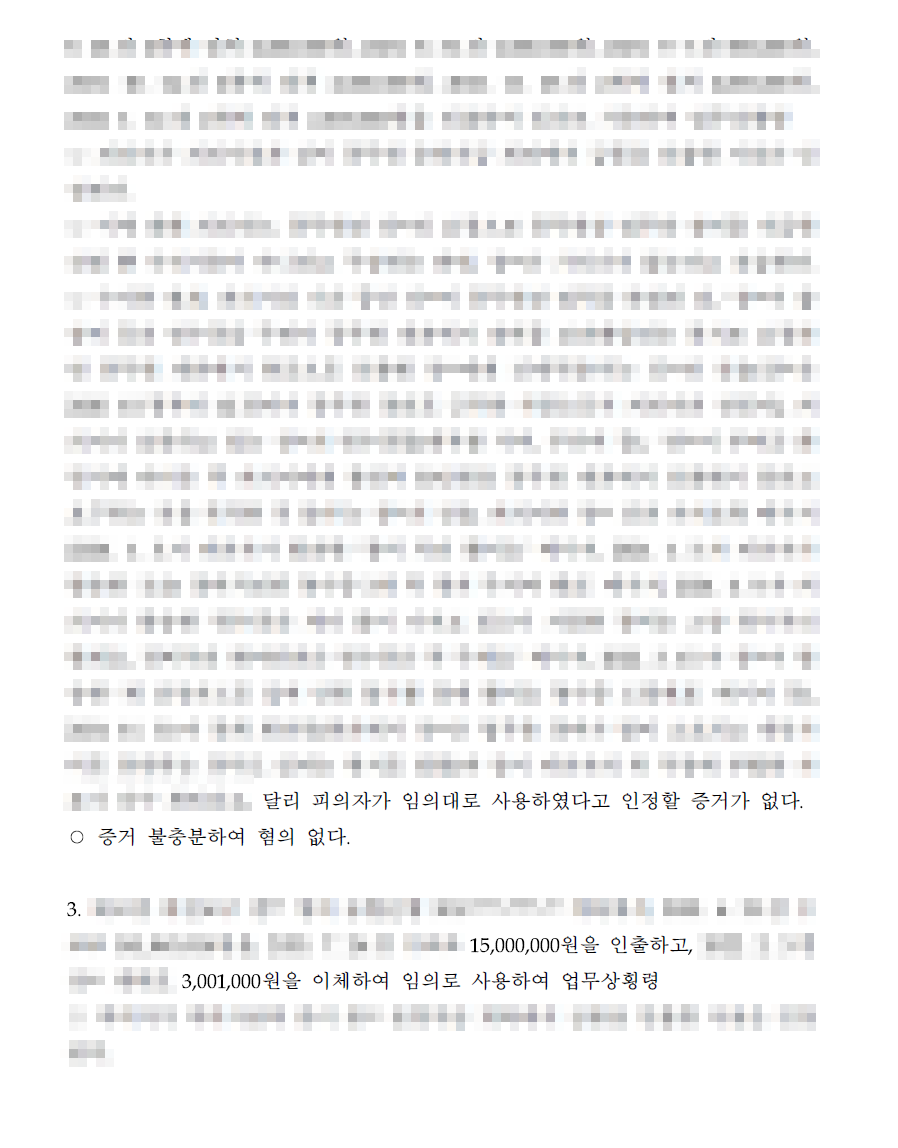 아래 사건은, 저희 법무법인 여암의 정정교 변호사가 직접 검찰 단계에서 사건 변호를 진행하여, 업무상횡령에 대하여 검찰로부터 무혐의 처분을 이끌어낸 사안입니다.