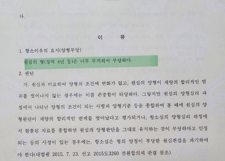 이 사건의 경우 피해자가 외국인이라는 점, 이 사건 피해자에 대한 수사를 받으면서 피해자2에 대해 또다시 범행을 저질렀다는 점에 대해 반성이 전혀 없다는 이유로 동종범죄 전력이 없음에도 불구하고 괘씸죄가 적용되어 4년형을 선고받은 것입니다. 그러나 2심에서나마 비로소 자백하며 피해자2와 합의를 하였고 이 사건 피해자에 대해서는 2천만원을 공탁하였기 때문에 감형이 된 것입니다. 그런데 1년만 감형된 것에 대해서는 가해자측에서는 다소 아쉬운 결과였을 것입니다.