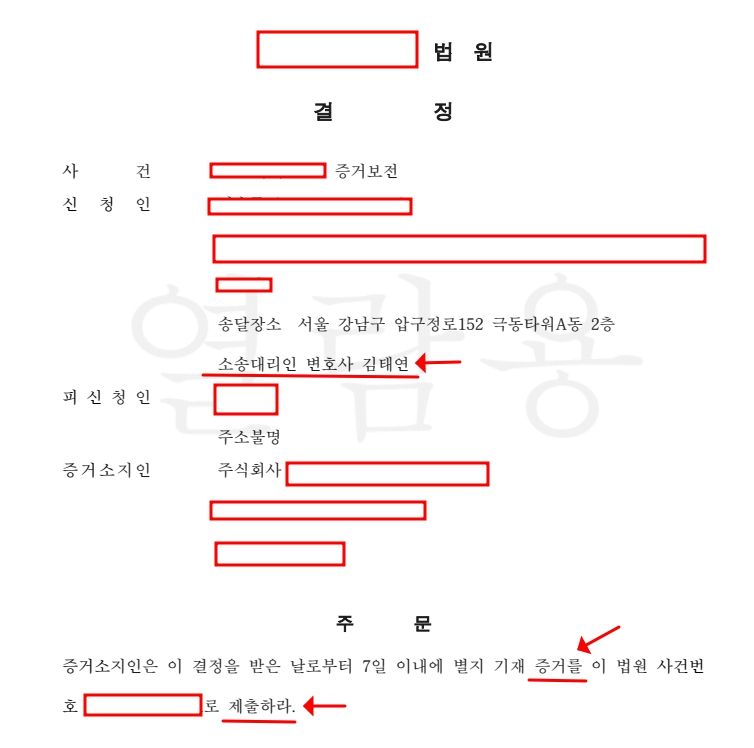 [태연법률사무소 성공 사례, 증거보전신청, 증거보전신청성공]