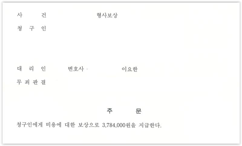 피고인은 B의 무고로 말할 수 없는 고통을 겪었고, 무죄판결이 확정된 이후 법원에 형사비용 보상청구를 하였습니다.