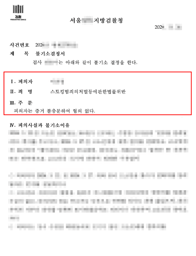 이에 검찰은 의뢰인에 대하여 무혐의 불기소 처분을 내렸습니다.