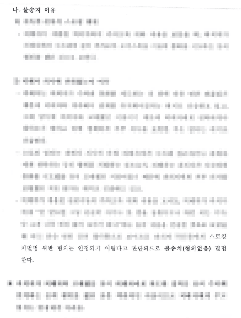 의견서의 핵심 요지는 ①의뢰인과 상대방의 기존 관계, ②상대방이 적극적인 거부의사를 표명하지 않은 점, ③의뢰인에게 스토킹의 고의가 없다는 점이었습니다.